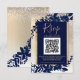 gold script blue leaf snow elegant winter QR rsvp Card