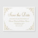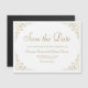 This elegant vintage-inspired formal wedding save the date magnetic card features the text in gold coloured script and serif fonts, framed by a delicate vintage gold vine motif.