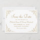 This elegant vintage-inspired formal wedding save the date card features the text in gold-coloured script and serif fonts, framed by a delicate vintage gold vine motif.