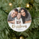 Gold Script Christmas photo family holiday Ceramic Ornament