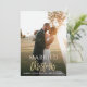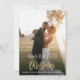 card design with a photo of the bride and groom and elegant faux gold brush typography. The text and colours can be personalised.