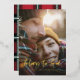 Gold script glory to god red tartan photo foil holiday card