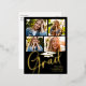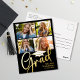 Celebrate your milestone with this graduation invitation announcement card, featuring a photo collage template and real gold foil for a touch of elegance. Designed for high school or college graduates, this budget-friendly postcard combines a classic calligraphy script with a stylish typography design, creating a classy and elegant look. Perfect for announcing your class of celebration, this grad party invite offers a timeless way to share your achievement with friends and family.