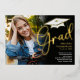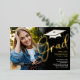 Celebrate your achievement with this graduation photo template party invite, featuring real gold foil for a sophisticated touch. Designed for high school or college graduates, this traditional announcement showcases your senior photography style with a simple grad cap accent. The elegant calligraphy script and trendy typography design create a minimalist classy look, making it a timeless way to announce your class of celebration in style.