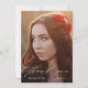 This graduation thank you card features modern calligraphy and a full photo of the new graduate. On the front, a gold overlay includes the words "thank you" written in pretty script lettering; the graduate's name and graduation year are written in white below. The typography design overlays a full vertical photo of the graduate. On the back, you can write a custom message to recipients, or delete the template text to create a blank area for a handwritten note.