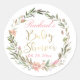 Gold Script Greenery Floral Wreath Baby Shower Classic Round Sticker