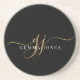 Gold Script Initials Monogram Minimalist Black Coaster