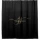 Gold Script Initials Monogram Minimalist Black Shower Curtain