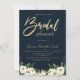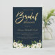 gold script ivory white floral navy bridal shower invitation
