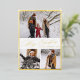 Gold script Merry Christmas 3 photo collage Foil Holiday Card