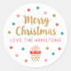 Personalise this cute merry Christmas sticker for your holiday packages and gifts it is decorated with polka dots and a cute present. Designed for you by Blackberry Boulevard.