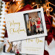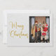 Send sophisticated holiday greetings with this elegant gold script Merry Christmas family photo card. Featuring two photo spaces framed on a textured white background, the design showcases “Merry Christmas” and “New Year” in stylish gold script lettering. Personalised with your family name, this flat card is a timeless choice for sharing your warmest wishes with loved ones during the holiday season.