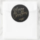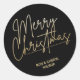 Gold Script Merry Christmas on Black Classic Round Sticker