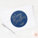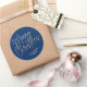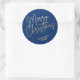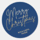 Gold Script Merry Christmas on Blue Classic Round Sticker