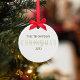 Celebrate the season in style with this Merry Christmas tree ornament, a minimal modern holiday decoration that combines timeless elegance with personal charm. Featuring a clean, simple seasonal keepsake design, this chic Christmas accessory showcases gold calligraphy script and a handwritten calligraphy style for a sophisticated touch. Personalise it with your family name and a simple photo design to create a cherished classic holiday design. Perfect as a stylish holiday home accent, this keepsake is ideal for gifting or adding a personalised touch to your decor. Make your holiday memories shine with this elegant treasure!