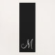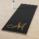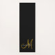 Personalised monogrammed stylish black yoga mat with a white and gold script script font design. Trendy typographic style.