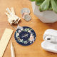 Gold Script Monogram Navy Blue Floral Roses Key Ring