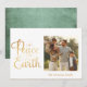 “Peace on Earth” in faux gold. Add your family picture. The distressed green colour on the back sets the tone for extra elegance. Change to your name and what a beautiful holiday card.