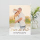 This elegant save the date features shimmering script in faux gold foil with a striped backer and lots of room for additional wedding information, like your wedding website or accommodations details. Upload your own photo and customise the information to include your wedding details.