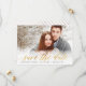 This elegant save the date features shimmering script in faux gold foil with a striped backer. Upload your own photo and customise the information to include your wedding details.