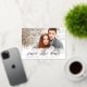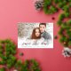 This elegant save the date features shimmering script in gold foil with a striped backer. Upload your own photo and customise the information to include your wedding details.