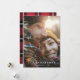 Gold script red plaid backer 1 photo Christmas Holiday Card