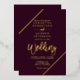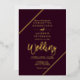 Gold typography on plum red maroon and faux gold geometric stripes chic wedding , perfect for elegant, chic wedding,