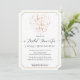 "Gold Script Typography Love in Air Bridal Shower Invitation." Calligraphy script was hand lettered by Audrey Jeanne then graphically turned into a gold glitter dimensional look that is surrounded by pink scroll swirls in the shape of a heart. The reverse side is a hand painted modern watercolor wash in very pale blush pink. All artwork was created by internationally licensed artist and designer, Audrey Jeanne Roberts, copyright.