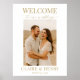 Welcome your guests in timeless elegance with this gold script white photo wedding welcome poster. Featuring a clean white background, luxurious gold script typography, and your custom photo, this design exudes modern sophistication and romance. Perfect for displaying on an easel at your ceremony or reception entrance, or framing as a keepsake after your wedding day. Personalize easily with your names, wedding date, and venue — a print-ready design that brings a touch of gold luxury to your celebration.