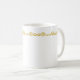 Simple, yet elegant vine-like scroll work in a classy gold tone wraps around the top of this mug for a graceful and pretty decoration.
