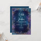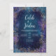 Invite your guests to an event of celestial opulence with this breathtaking luxury cosmic wedding invitation. The entire design is a highly intricate, full-bleed background that combines the mystery of the night sky with baroque elegance. The central text area is a deep, dark expanse of midnight blue and teal, sprinkled with countless twinkling blue stardust motes, giving the effect of looking into the infinite depth of space. Framing this dark centre is an extraordinary, dense border of shimmering faux gold baroque scrollwork and delicate, lace-like filigree. This gold is interwoven with beautiful abstract shapes in rich indigo, sapphire, and deep violet hues, giving the border an exotic, floral-inspired complexity. The overall style is fantastical, luxurious, and mystical, perfect for couples planning an enchanting evening wedding, a masquerade ball, or any event emphasizing cosmic beauty, dramatic jewel tones, and refined, opulent detail. This design is perfect for celestial wedding invitations, luxury gala event announcements, starry night engagement party invites, or sophisticated winter solstice stationery. The captivating, detailed background is also a unique choice for a high-end jewellery brand advertisement or an exclusive New Year's Eve party announcement.