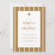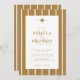 This gold seashell all-in-one wedding invitation features a striped background, delicate shell illustration, and refined script monogram. Perfect for coastal weddings, beach ceremonies, or destination events. Includes invitation, details, and RSVP in a single elegant format. A timeless choice for couples seeking sophisticated design with subtle nautical flair and understated charm.