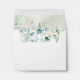 Elegant wedding RSVP self addressed envelope featuring eucalyptus leaves and greenery with a hint of blue and speckles of faux gold glitter on the inside. The outside has your return address in a gold tone. This simple, rustic design is great for a botanical themed wedding in the summer.