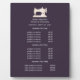 Understated design displays your services, price list or business information beneath an illustration of a vintage sewing machin in faux gold over a purple background and your name or business name.