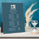 Understated design displays your services, price list or business information beneath an illustration of a vintage sewing machin in faux gold over a teal background and your name or business name.