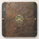 Gold Shamrock St.Patrick`s Day,Brown Leather Coaster