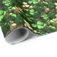 You're in luck! You found a pattern of shiny gold and green shamrocks, just in time for St. Patrick's Day! (The reflective chrome is only simulated in the image.) You must be quite the leprechaun. The artwork evokes a golden treasure found in a cool forest on a VERY lucky day!