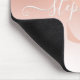 The product itself is good quality and I like the simplistic elegant design. The only criticism I have is that it's not really accurately represented by the picture provided. I thought that the mousepad would be a non-porous or laminate surface and as such the gold writing would actually shine against the soft pink. However the design is printed on a thick fabric surface, so the gold colour is just the shade of gold but doesn't stand out from the pink background. (See picture)