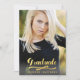Use this elegant, stylish photo graduation invitation to invite your family and friends to celebrate your daughter's shining moment. Simple Gold Foil and Chalkboard Graduation Party Invitation for 2014 in a vertical design. Design by Elke Clarke © Visit our shop www.zazzle.com/monogramgallery* for more designs and styles. Add your own photo and text. A simple gold foil typography handwritten script font text overlay (printed photo effect) with the word "Graduate". Replace sample photo with your own. Black chalkboard printed photo effect on back of card with gold text. Other styles and colours available.