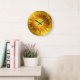 gold ,shiny ,modern, style, coloured, sunflower large clock