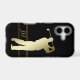 Perfect for the golf fan, this phone case features a gold silhouette golfer in full swing. At the bottom is your monogram framed by thin darker gold lines. The text and image are placed on a black background.