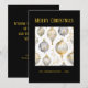 A lovely holiday card to give for Christmas, it features a watercolor pattern of gold and silver ornaments that is very elegant. The background of the card is black. You can keep or change the faux gold "Merry Christmas" greeting. Be sure to edit the example "from" names and date.