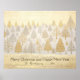 Gold and silver Christmas trees on a white snowy hillside background is from a vintage watercolor pine tree forest stylised painting. This elegant rendition is featured on a holiday poster. "Merry Christmas and Happy New Year" is the suggested greeting on the faux gold border trim, but it is editable. You can change it or delete it. Be sure to change the example family name (and year) to your own, or leave it off as you choose.