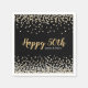 Add your own special touch to this elegant custom anniversary party napkin design featuring sparkly gold and silver confetti over a black background, modern script typography with the words "Happy 50th" and the couple's names.
