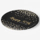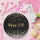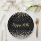 Add your own special touch to this elegant custom anniversary party plate design featuring sparkly gold and silver confetti over a black background, modern script typography with the words "Happy 50th" and the couple's names.