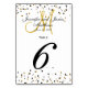 Hollywood Glitz and Glam. Gold, Silver, Black and White Wedding Table Number Cards with custom gold monogram. Design by Elke Clarke ©. Printed glitter confetti design. Customise with your bride and groom names, newly weds last name, monogram initial and wedding date. Order one per table with each table number but still receive the bulk discount for total number ordered. Other colours available