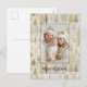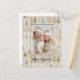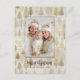 Gold and silver Christmas pine trees look beautiful along a snowy white background in this elegant watercolor pattern on your holiday postcard. The main feature, of course, is your winter family or personal photo. The "Merry Christmas" greeting is in a pleasing contrasting black colour. The text is editable. Be sure to edit the example names and date.