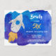 Gold Silver Rocket Ship Outer Space Birthday Party Postcard Invitation. Watercolor galaxy, gold and silver faux foil rocket ship, outer space themed birthday party supplies. www.SamAnnDesigns.com