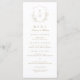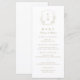 Monogrammed initials framed by elegant crest and hand illustrated botanical leaves, menu details in elegant script and classic font, simple and luxury. Great faux gold and white menu for modern classic wedding, simple formal wedding, elegant botanical garden wedding.
