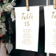 Romantic wedding seating chart cards feature stylish script and elegant font in gold colour, modern and simple, great for modern simple wedding, minimalist formal wedding, traditional classic wedding.